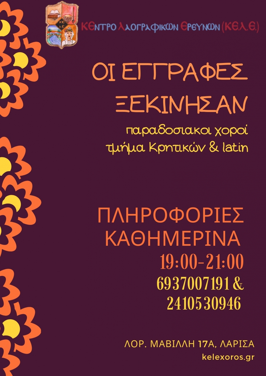Το ΚΕ.Λ.Ε πρωταγωνιστεί στο χώρο της διδασκαλίας παραδοσιακών χορών από το 1995, με ενεργό συμμετοχή τόσο στα δρώμενα της Λάρισας όσο και πανελληνίως. Με διακρίσεις, συμμετοχές σε διεθνή και ευρωπαϊκά φεστιβάλ, λαογραφικές έρευνες και παραστάσεις. Μα πάνω από όλα με αγάπη και σεβασμό σε αυτό που κάνουμε.